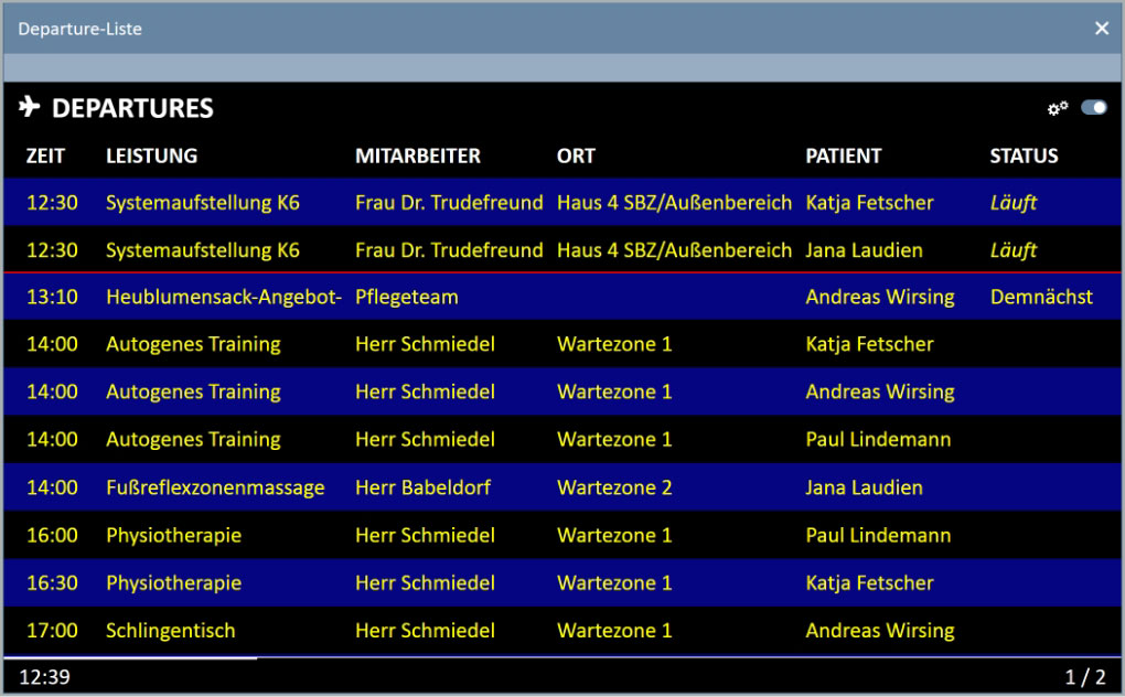 Airport Anzeige für Kliniken